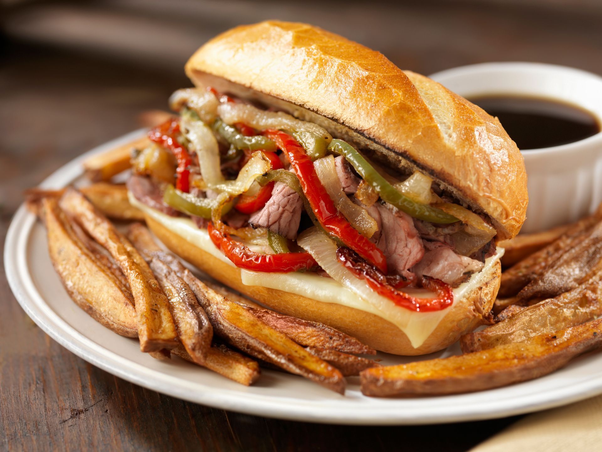 shaved ribeye, sautéed green peppers, onions & mozzarella